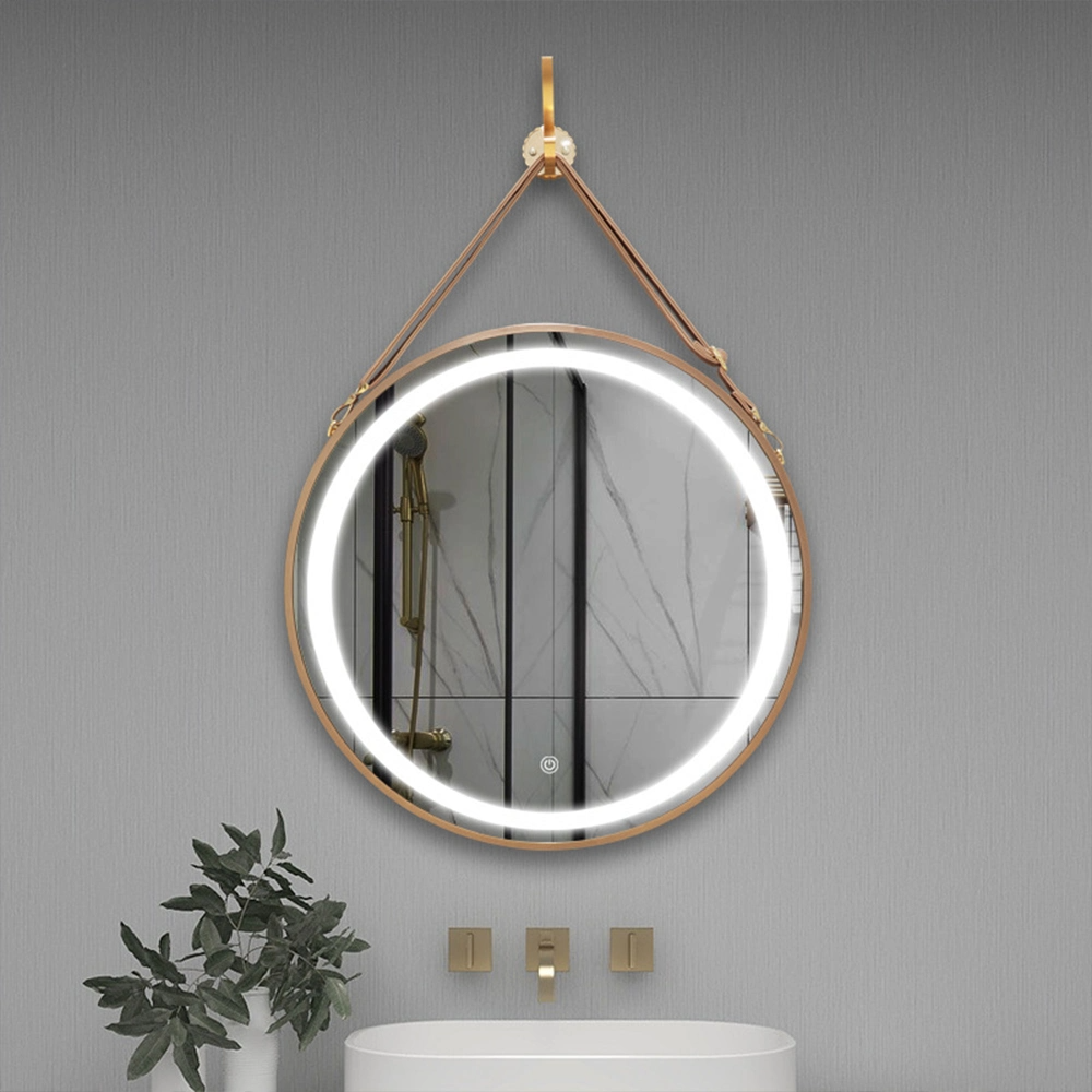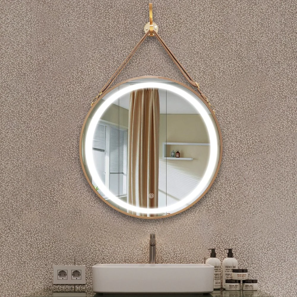 บ้าน / ผลิตภัณฑ์ / กระจกห้องน้ำ / กระจกติดผนังทรงกลม PU พร้อมสายหนัง