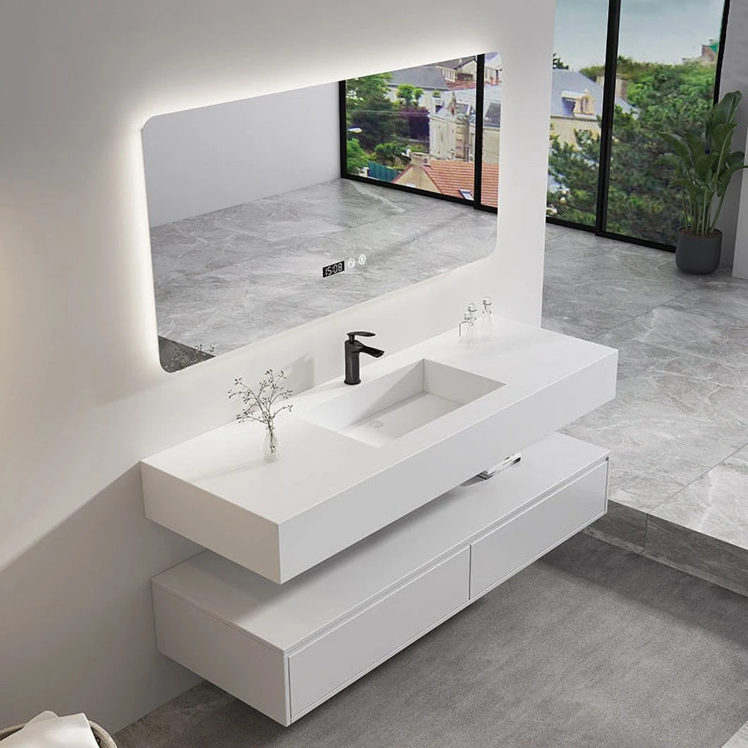 บ้าน / ผลิตภัณฑ์ / ตู้กระจก / เคาน์เตอร์หินอ่อนที่ทันสมัยอ่างล้างจานคู่เดี่ยวตู้ห้องน้ำ Monobloc ตู้กระจกสมาร์ทห้องน้ำโอ๊ค