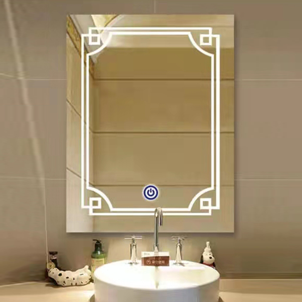 วัสดุกระจก: กระจกเงาสีเงิน 5 มม ชื่อผลิตภัณฑ์: กระจกห้องน้ำเรืองแสง