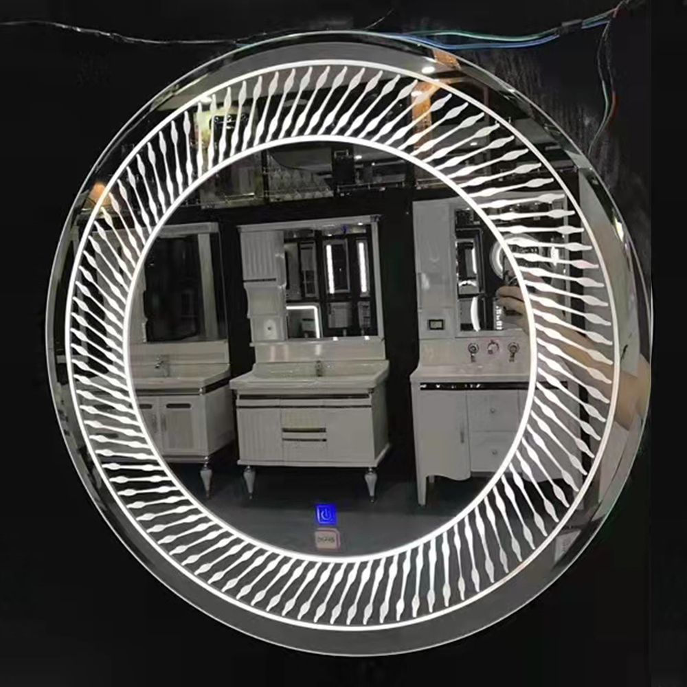 วัสดุกระจก: กระจกเงาสีเงิน 5 มม ชื่อผลิตภัณฑ์: กระจกห้องน้ำเรืองแสง